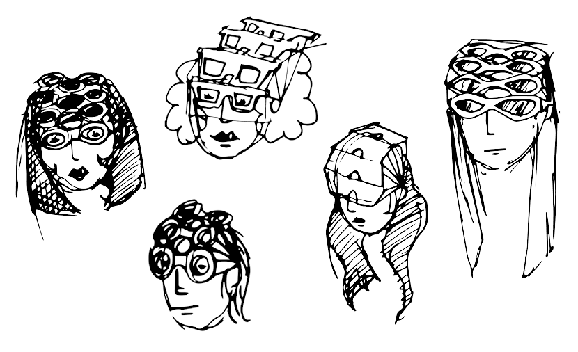Persona Eyewear is a 3D-printed headpiece sculpture consisting of 8 lenses, of which only two are functional. It is meant to represent the many personas, or self-made identities we choose to take on in different social situation.